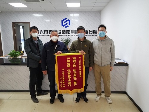 3月31日下午,浙江德力裝備有限公司特地趕到嵊新分院表示感謝,并送上了“高效工作,助企業復工復產;嚴格檢驗,保設備安全運行”的錦旗。