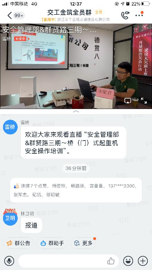 近日,我院結(jié)合安全生產(chǎn)月主題,走進(jìn)群賢路浙江交工集團(tuán)股份有限公司項(xiàng)目部,采取線上線下相結(jié)合的方式,開展起重機(jī)械安全知識宣講。交工集團(tuán)負(fù)責(zé)起重機(jī)使用管理、維護(hù)保養(yǎng)的15名員工在現(xiàn)場聽講,線上1341名員工通過釘釘直播觀看此次宣講。