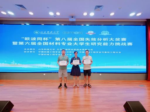 近日,第八屆“歐波同杯”全國失效分析大獎賽在山東科技大學圓滿落幕。本次比賽由山東科技大學和北京歐波同光學技術有限公司共同主辦,中國機械工程學會失效分析分會、可靠性工程分會、材料分會協辦。本屆大獎賽有168個參賽作品,600余名代表參加此次比賽,通過激烈角逐,我院2個參賽作品《布袋除塵設備雙相不銹鋼筒體破裂失效分析及改進方案》《電動葫蘆卷筒失效分析及改進方案》分別獲得全國一等獎、二等獎。