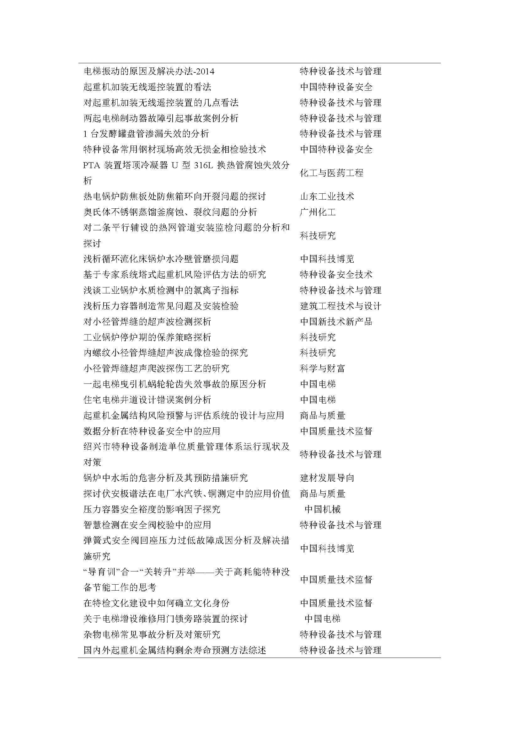 紹興市特檢院發表論文匯總表