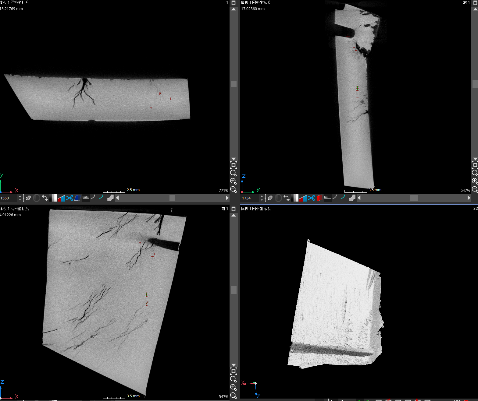 工業(yè)CT可用于無(wú)損檢測(cè)、結(jié)構(gòu)分析、逆向工程/快速原型、3D打印檢測(cè)、精密內(nèi)部/外部測(cè)量、失效檢測(cè)等領(lǐng)域,能在無(wú)損傷條件下以二維斷層圖像或三維立體圖像的形式,清晰、準(zhǔn)確、直觀地展示被檢測(cè)物體的內(nèi)部結(jié)構(gòu)、組成、材質(zhì)及缺損狀況。